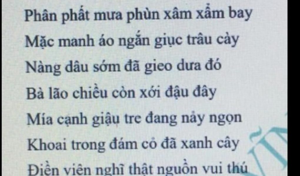Câu 1. Bài thơ trên viết theo thể thơ nào?